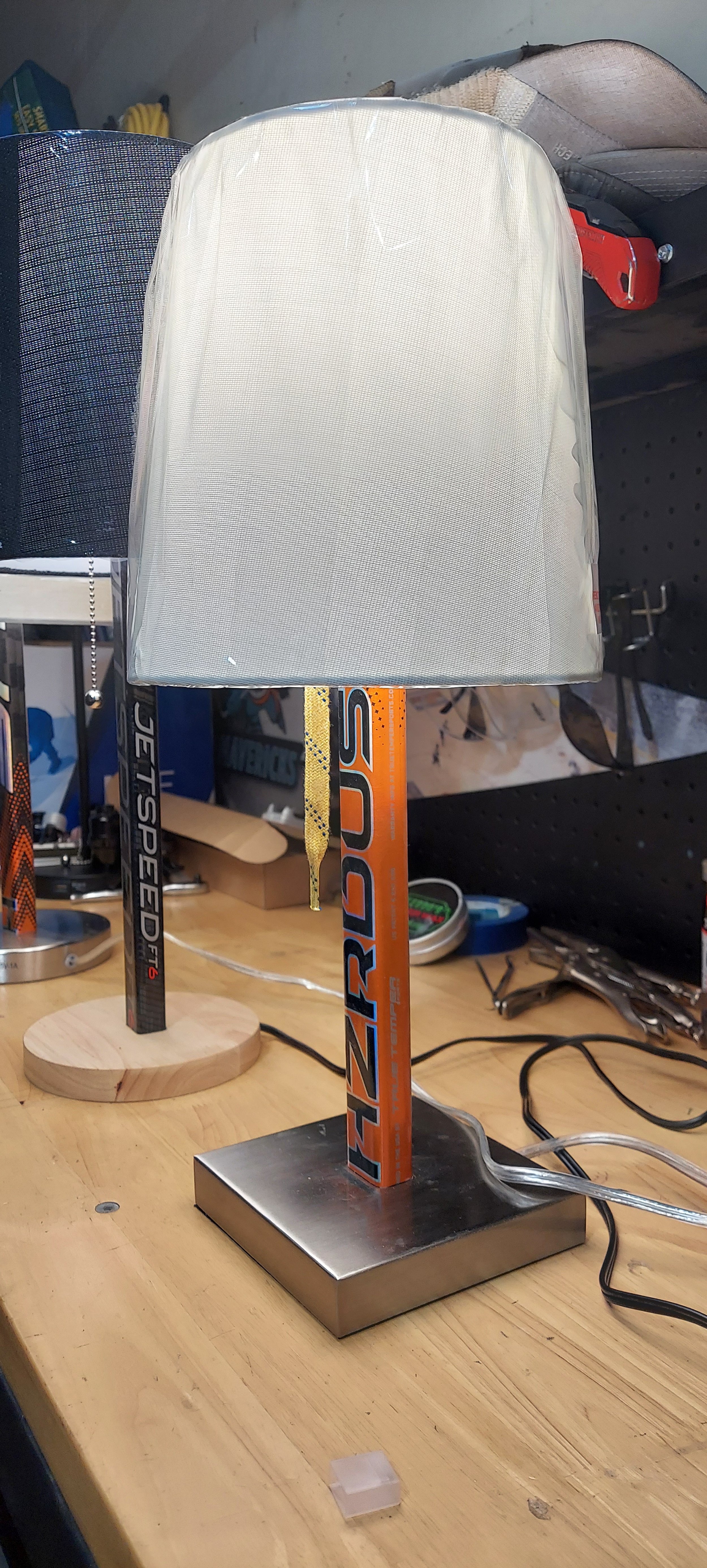 I started playing hockey locally in Kansas City a few years ago. I noticed a lot of broken sticks end up in trash cans after games. I was determined to find a way to reuse these sticks that wasn’t another chair or table. After seeing a post online about the idea of turning sticks into lamps and being challenged by a player on my team…